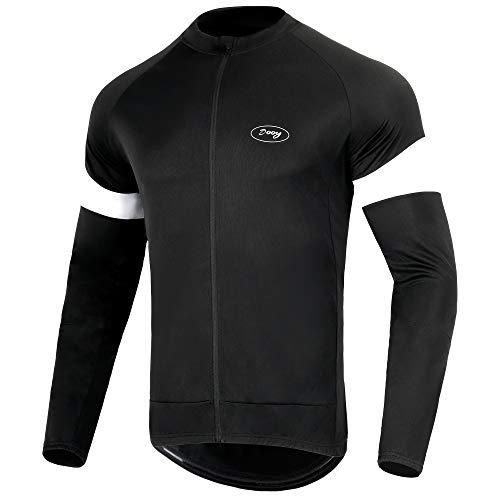 Dooy メンズ サイクリング バイク ジャージ 長袖 MTB シャツ 3つのリアポケット 通気性 スムーズジッパー サイクリングシャツ L ブラック