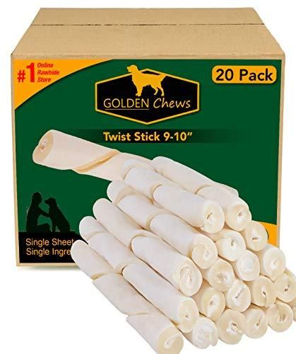 Golden Chew Natural Rawhide Roll Twist Sticks 9-10 Inches Dog Treat. Extra Thick