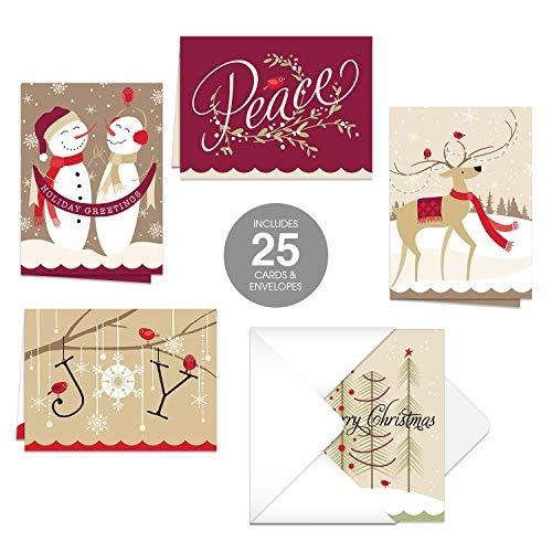 気まぐれなホリデークリスマスカード / 25枚のホリデーカード お揃いの封筒付き