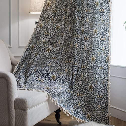 vctops Vintage Floral Print Cotton Linen Curtain Panel with Tassels Farmhouse St