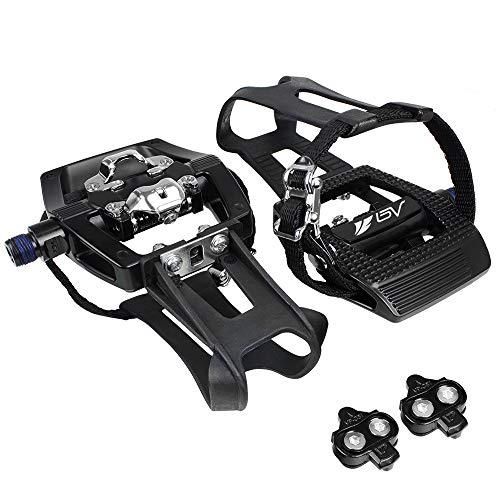 BV Bike Shimano SPD Compatible 9/16'' Pedals with Toe Clips SPD Cleats included