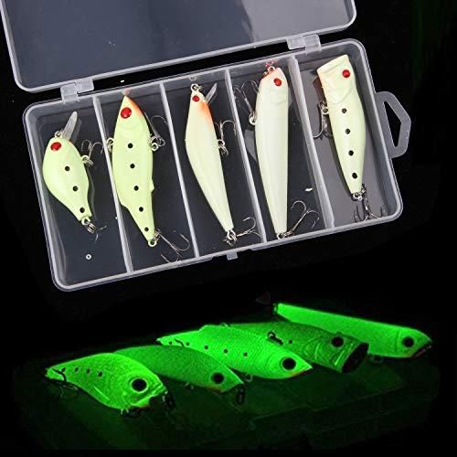 AGOOL ナイトグロー フィッシングルアーベイトキット 5/10個 夜光 VIB ポッパー クランク ミノー ペンシル ハードベイト ナイトグロー 人工ルアー