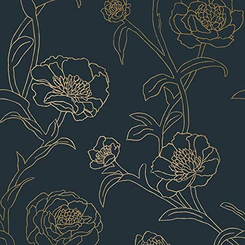 Tempaper PE10633 ピーコック ブルー&メタリックゴールド 牡丹 デザイナー取り外し可能 剥がして貼れる壁紙