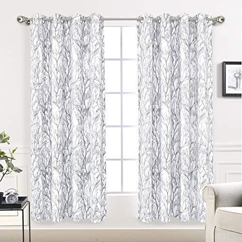 DriftAway ツリーブランチ ボタニカル柄 絵画 遮光 断熱 グロメット裏地 ウィンドウカーテン 2枚 各52インチ×63インチ グレー