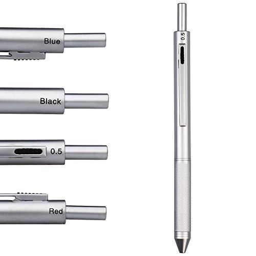 DunBong 4イン1マルチカラーペン メタルケース多機能ペン 0.5mmシャープペンシル レッドボールペン ブルーボールペン ブラックボールペン シルバー