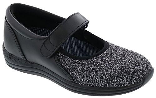 Drew Shoes Magnolia 14326 レディースカジュアルシューズブラック/シルバー/ストレッチ8ミディアムBベルクロ