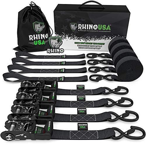 RHINO USA Ratchet Straps Tie Down Kit 5208 Break Strength - Includes 4 Heavy Dut