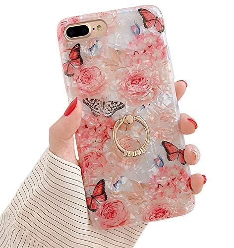 Qokey iPhone 8 Plusケース iPhone 7 Plusケース 5.5インチ フラワーキュートスタンドカバー レディース ガールズ 360度回転