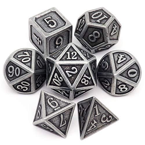 Haxtec Antique Iron DND Metal Dice Set Silver Pirate D&D Polyhedral Dice for Dun