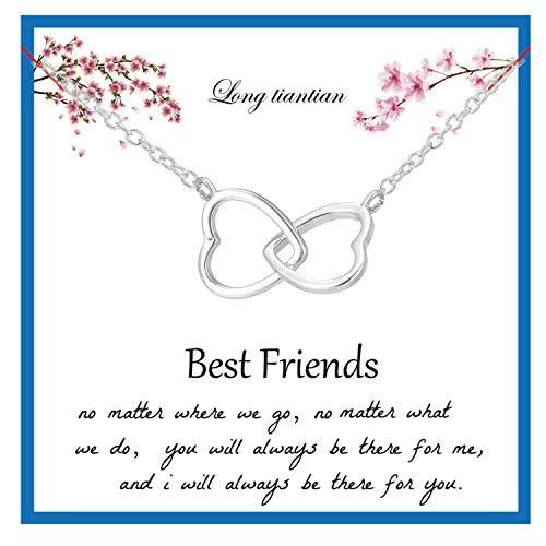 長いチアン友情ギフトネックレス 2つのインターロックハートネックレス レディース ベストフレンドネックレスジュエリー