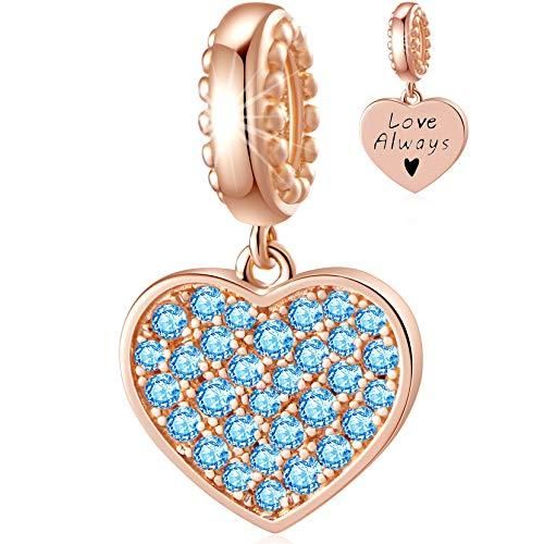 CHAWIN 誕生石チャーム ローズゴールドメッキ 925スターリングシルバー ハートダングルチャーム スパークリングキュービックジルコニア付き Pandora