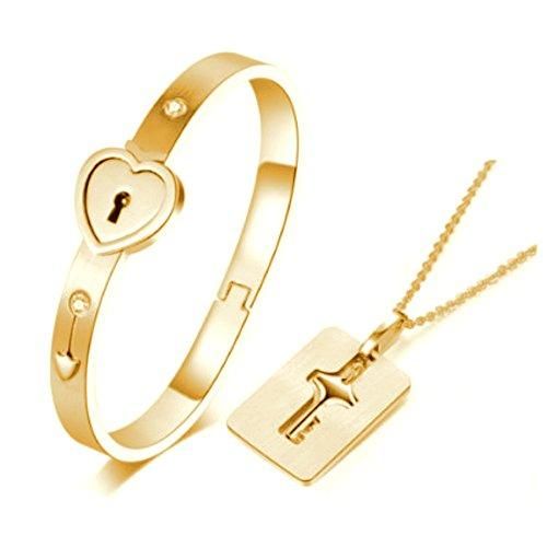 Heart Lock Love Bracelet Bangle Key Chain Necklace Pendant Lover Jewelry Set For