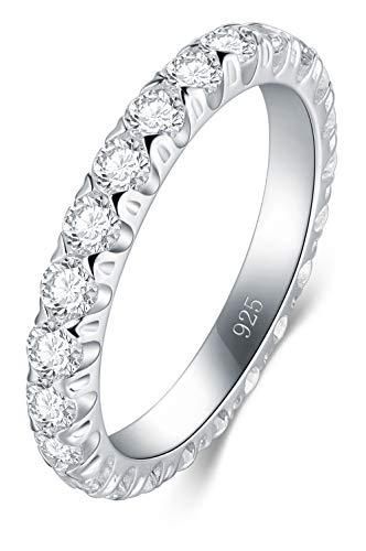 925 Sterling Silver Ring Boruo Cubic Zirconia CZ Wedding Band Stackable Ring 3mm