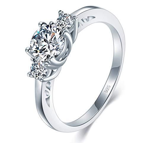 BORUO レディーズ 925スターリングシルバーリング、キュービックジルコニアCZダイヤモンドエタニティ婚約結婚指輪リング 14