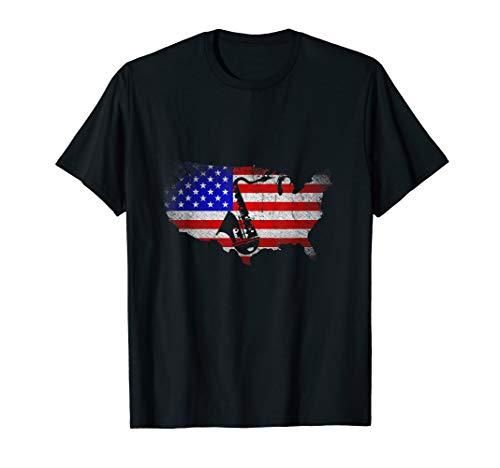 Patriotic American Saxophonist US Flag USA Map Saxophone T-Shirt