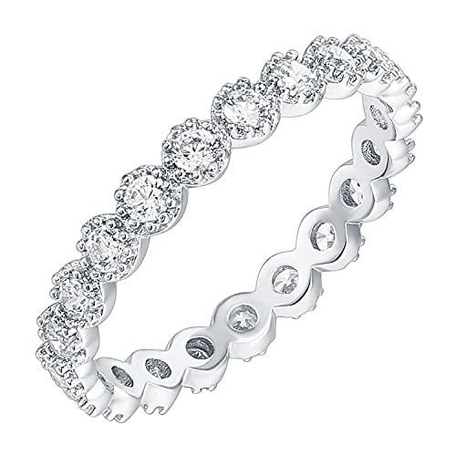 PAVOI 14Kゴールドメッキリング キュービックジルコニアバンド マーキーズミルグレインエタニティバンド レディース ゴールドリング