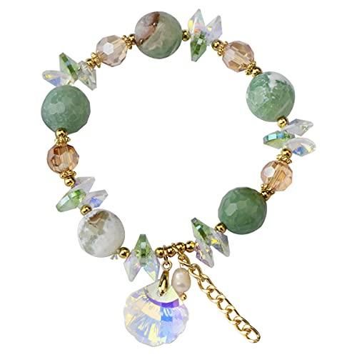 Green Agate Beaded Stretch Bracelet - Sparkly Crystal Gemstone Glass Blowout Bea