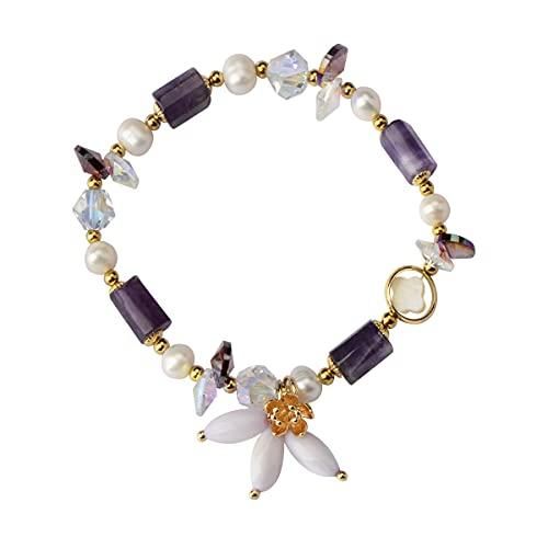 Beaded Charm Stretch Bracelet - Elegant Purple Agate Amethyst Crystal Gemstone G