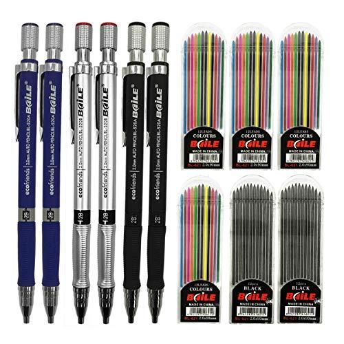 JYsun シャープペンシル 6本 2mm 4ケース カラー替え芯 2ケース ブラック詰め替え アートスケッチ 大工ドラフト 描画 ライティング クラフト用