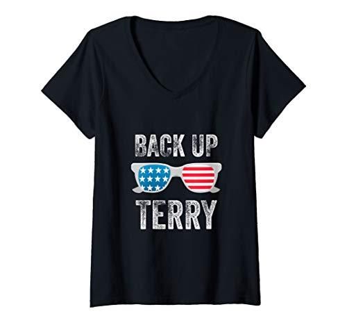 Womens Back Up Terry American Flag USA 4th Of July Sunglasses Gifts V-Neck T-Shi
