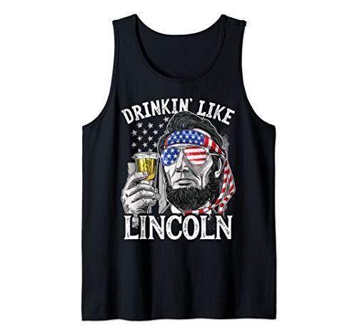 Drinking Like Lincoln 4th of July Men Abraham Merica Flag Tank Top