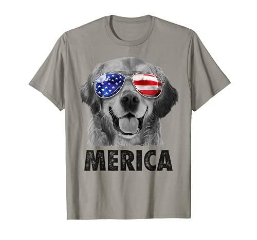 Golden Retriever 4th of July Merica American Flag Sunglasses T-Shirt