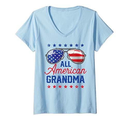 Womens All American Grandma 4th of July Family Matching Sunglasses V-Neck T-Shir