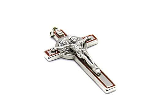 聖ベネディクト十字架メダル 十字架 3インチ シルバーメッキ レッドエナメル