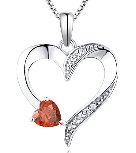 YL ハートネックレス 925スターリングシルバー 愛の形 人工ガーネットペンダント 記念日ギフト