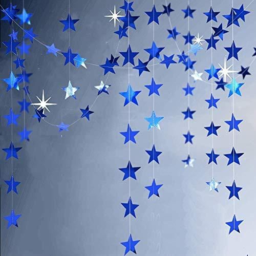 Decor365 反射 青 スター ガーランド ストリーマー バンティング 背景 パーティー 装飾 スター ハンギング 装飾 冷凍 誕生日 ブルー シルバー 結