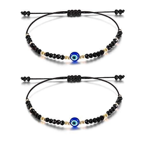 Tarsus Dainty イーブルアイ ビーズブレスレット 調節可能なストリングお守り レディース メンズ ボーイズ ガールズ ブラック
