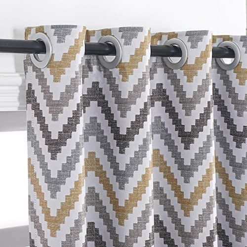 Autumn Dream シェブロンボヘミアングロメットトップ 遮光カーテン ドレープ リビングルーム 寝室用 52×63、イエロー 1パネル