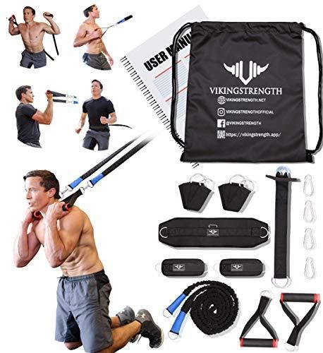 Vikingstrength トータルボディシステム エクササイズフィットネスバンド 自宅 ドアジム ハンドル付き ランニングバンジー付き 男女兼用 ガレージ/