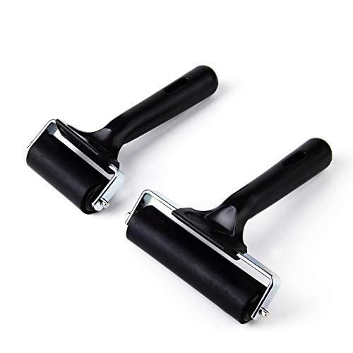 HRLORKC ラバーローラー ブレイヤーローラー ハードラバー 3.8インチと2.2インチ 印刷用 ブラック 2個