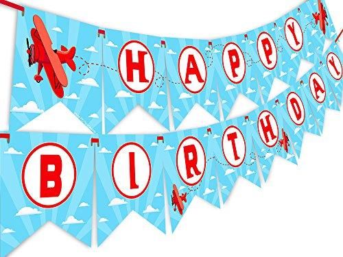赤い飛行機 ハッピーバースデー バナー ペナント - 飛行機パーティーデコレーション - アップアンドアウェイパーティー
