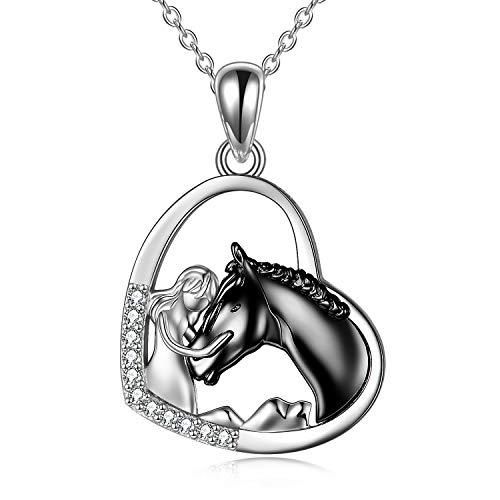YFN 馬ペンダントネックレス ジュエリー 925スターリングシルバー 女の子への馬の贈り物 女性や女の子への馬の贈り物 馬と女の子ネックレス ブラック