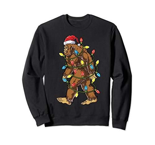Bigfoot Santa Christmas Tree Lights Xmas Boys Men Sasquatch Sweatshirt