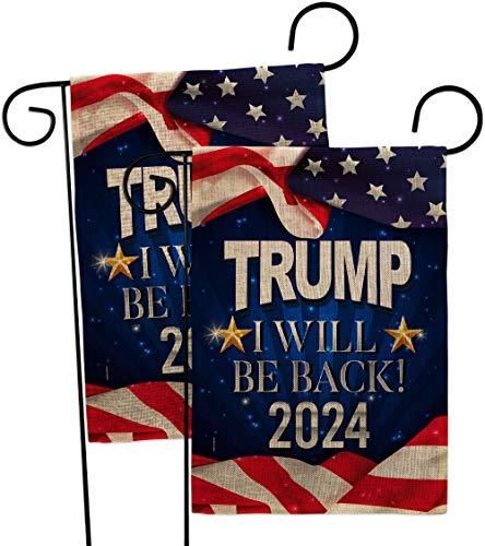 Trump Flag Will Be Back 2024 Burlap Garden Flag 2pcs Pack Patriotic Vote Preside