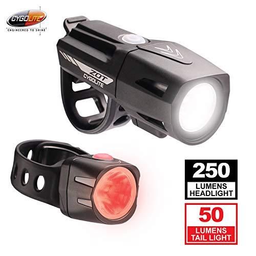 Cygolite Zot 250 Lumen Headlight & Dice TL 50 Lumen Tail Light USB Rechargeable