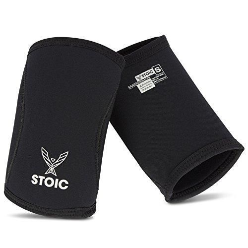 Stoic パワーリフト用のエルボースリーブ - ボディービルディング用の7mm + 5mm厚のネオプレンスリーブ、スクワット用の重量挙げ、クロストレーニング、