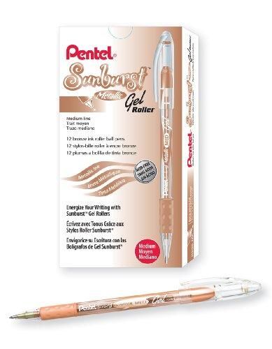 Pentel Sunburst Metallic Gel Pen 0.8mm Tip Writes 0.4mm Line Bronze/Transparent
