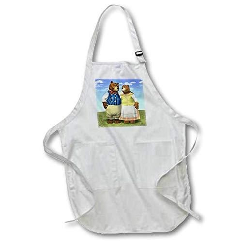White-Full - 3dRose Papa and Mama Bear Full Length Apron 60cm by 80cm White With