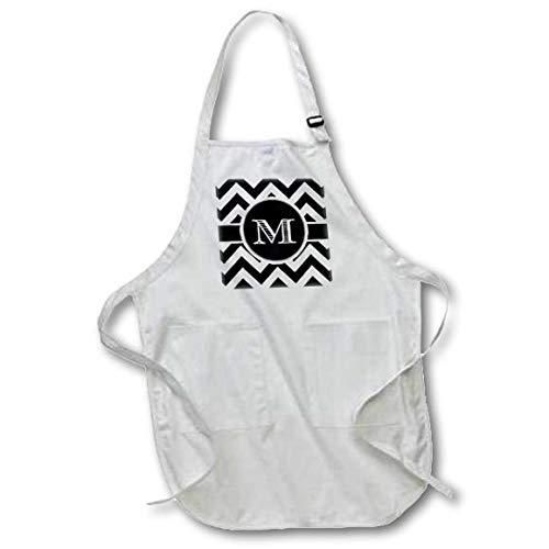3drose BrooklynMeme Designs??ブラックandホワイトシェブロンモノグラム初期M??エプロン White-Medium apr_222