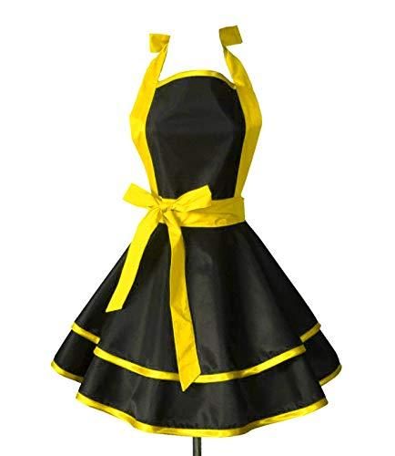 Hyzrz Lovely Handmade Cotton Retro Black Aprons for Women Girls Cake Kitchen Coo