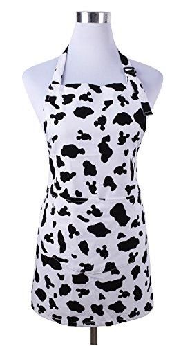 かわいいレディースガールズ料理キッチンエプロンポケット付きブラックホワイトCow Printよだれかけエプロンギフト、ホワイト