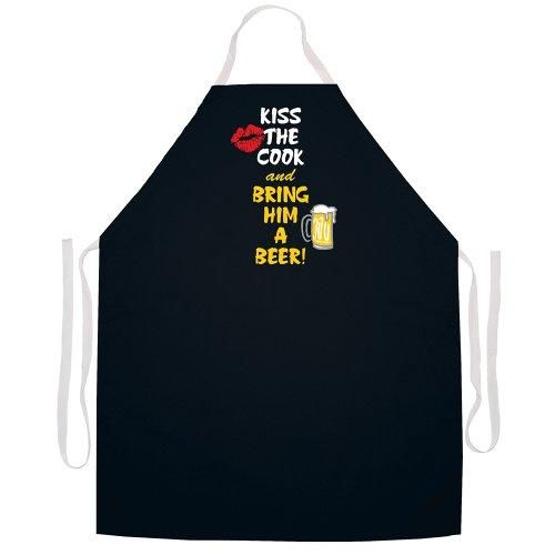 Attitude Aprons 完全に調節可能なKiss The Cook and Bring Him A Beer エプロン-ブラック