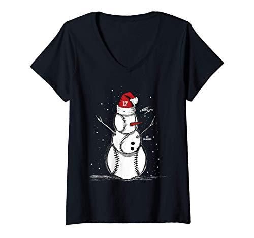 Womens Shohei Ohtani Baseball Snowman V-Neck T-Shirt