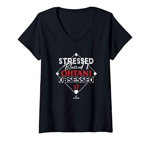 Womens Stressed Blessed and Shohei Ohtani Obsessed V-Neck T-Shirt