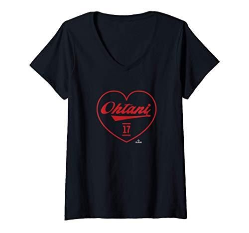 Womens Shohei Ohtani Heart Print Love Graphic Apparel V-Neck T-Shirt