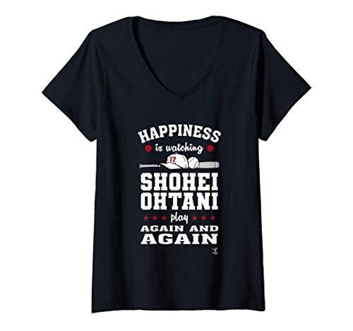 Womens Shohei Ohtani Happiness is Watching Gameday V-Neck T-Shirt